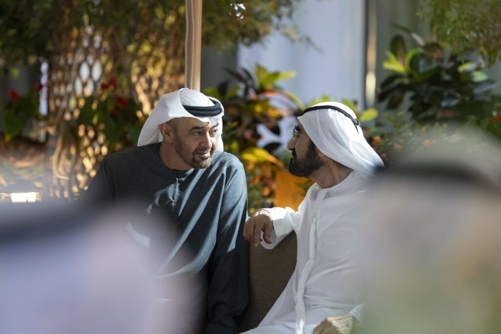 دبي، الإمارات – وام التقى صاحب السمو الشيخ محمد بن زايد آل نهيان رئيس الإمارات، الاثنين، أخاه صاحب السمو الشيخ محمد بن راشد آل مكتوم نائب رئيس الإمارات رئيس مجلس الوزراء حاكم دبي في استراحة المرموم بدبي.
