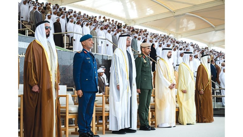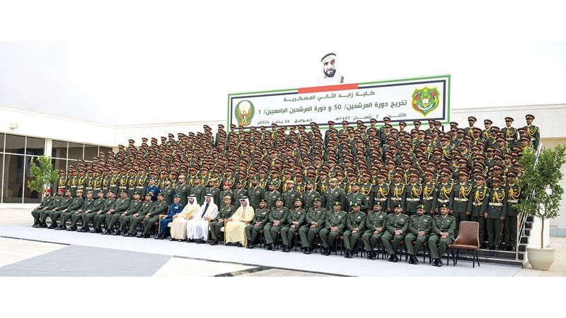 The ceremony was attended by His Highness Sheikh Khalid bin Mohammed bin Zayed Al Nahyan, Crown Prince of Abu Dhabi, His Highness Sheikh Hamdan bin Mohammed bin Rashid Al Maktoum, Crown Prince of Dubai, Deputy Prime Minister and Minister of Defense, and His Highness Sheikh Hazza bin Zayed Al Nahyan, the Ruler’s Representative in the Al Ain region. His Highness Sheikh Nahyan bin Zayed Al Nahyan, Chairman of the Board of Trustees of the Zayed bin Sultan Al Nahyan Foundation for Charitable and Humanitarian Works. Lieutenant General His Highness Sheikh Saif bin Zayed Al Nahyan, Deputy Prime Minister and Minister of Interior. His Highness Sheikh Hamdan bin Mohammed bin Zayed Al Nahyan, Deputy Chief of the Presidential Office for Special Affairs, His Highness Sheikh Zayed bin Mohammed bin Zayed Al Nahyan and Sheikh Mohammed bin Hamad bin Tahnoon Al Nahyan, Advisor to His Highness the President of the State, Minister of State for Defense Affairs, Mohammed bin Mubarak Al Mazrouei, Chief of Staff of the Armed Forces, Lieutenant General Issa Saif bin Ablan Al Mazrouei, and a number of sheikhs and senior officials, both civilian and military, as well as families of graduates and guests.