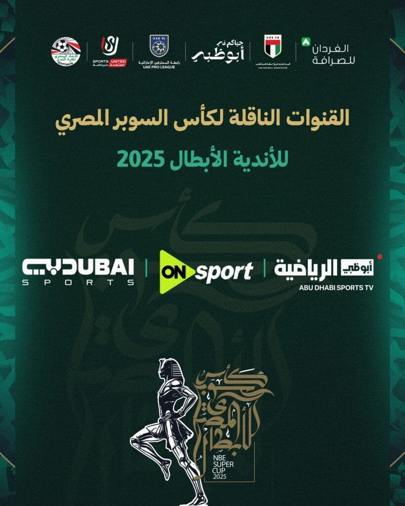 The Al Ahly vs Ceramica Cleopatra match can be watched live on 3 channels: ON Sports, AD Sports, and Dubai Sports.