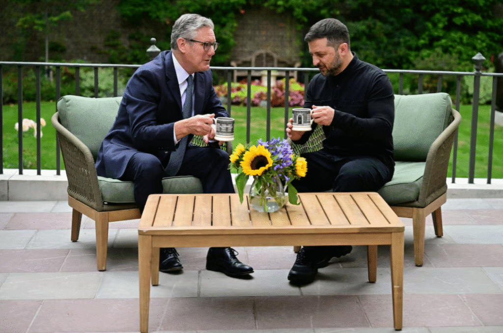 التقى زيلينسكي رئيس الوزراء البريطاني كير ستارمر. الهدف كان الاستفادة من زخم المحادثات الافتراضية التي عُقدت يوم الأربعاء مع القادة الأوروبيين وترامب. يسعى لوضع خطوط حمراء للمحادثات بين ترامب وبوتين في أنكوريج، ألاسكا.
